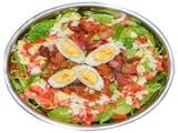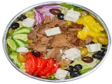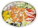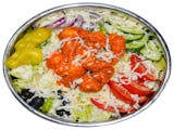 Fresh spring mix with lettuce topped w/ fresh tomatoes, cucumbers, red onions, pepperoncini, and black olives.