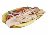 Garlic sauce, philly steak, mozzarella cheese, grilled onions, mushrooms, green peppers.